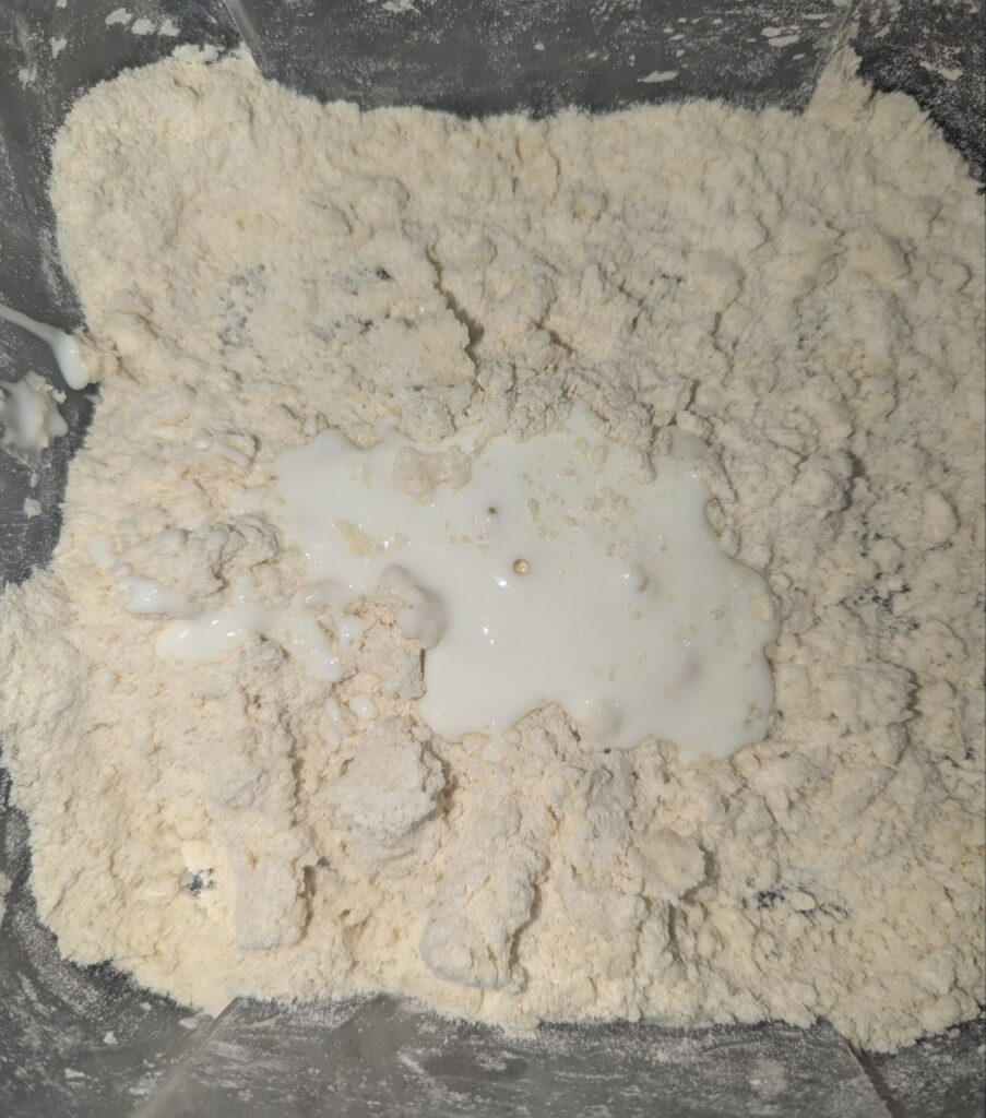 These biscuits start with a simple pantry staple, dry ingredients such as flour, salt, and baking powder.