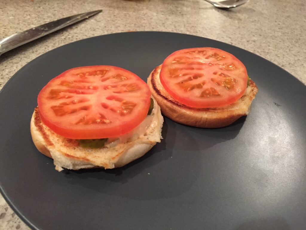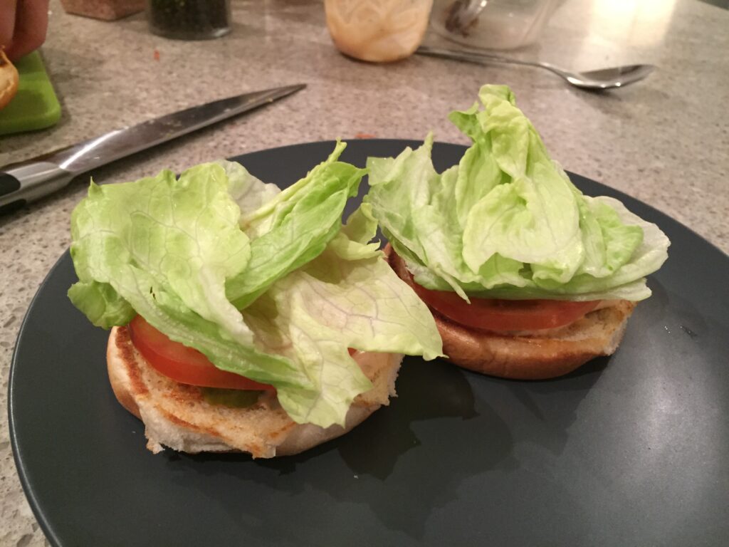 - Build burger: sauce → tomato → lettuce → patties → onions → sauce → top bun.