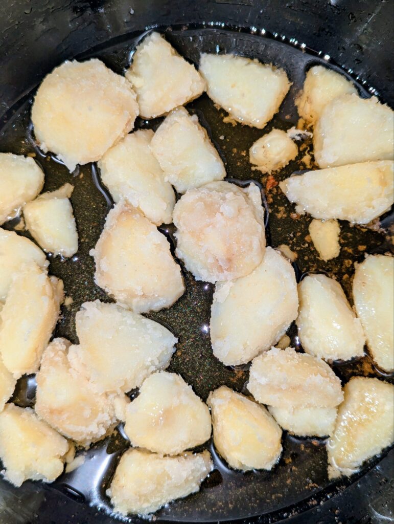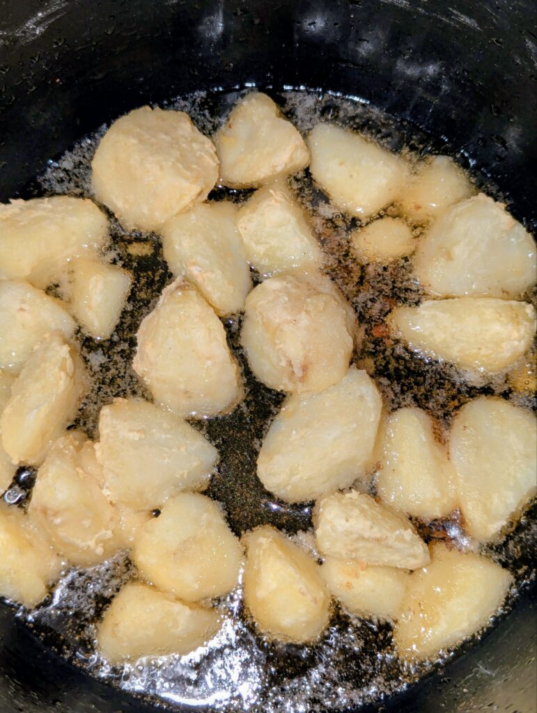 And when roasting, they crisp up all the way till the insides, and you won’t have the creamy interior, just crisp all the way.